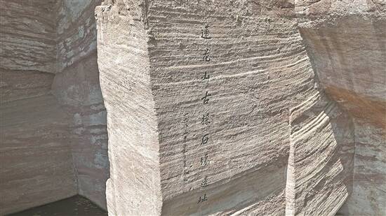 林敏介绍,古采石场的开采技术已经非常先进。他们采用的是露天开采法与地下矿房式开采法相结合的方式,这种采矿方法在当时非常罕见,展现出先人们高超的采矿工艺水平。如今遗留下来的采石面平均高度为25米,最高处达40米,最深处在地下13米。正所谓“莫讶巨灵挥巨斧,应歌群匠凿群工”。那些悬崖峭壁上,千年岁月刷洗后仍留下历代先民开山劈石、建设城乡的钎痕历历,桩孔累累,细看还能发现已被采凿而未运走的石柱或半成品。