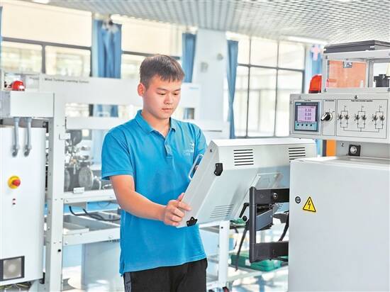 带上装备、设置系统、检测设备、故障排查……在广东省技师学院可再生能源项目集训基地,这一套对风力发电机进行运维的“组合拳”,在曾振江的手中,显得游刃有余。
