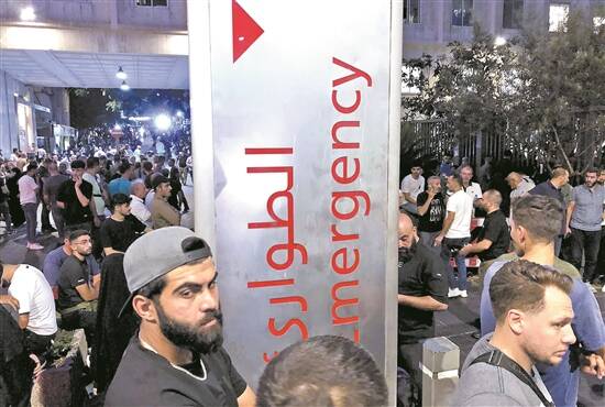 9月17日,在黎巴嫩贝鲁特一家医院,人们等待为传呼设备爆炸事件伤者献血 新华社发
