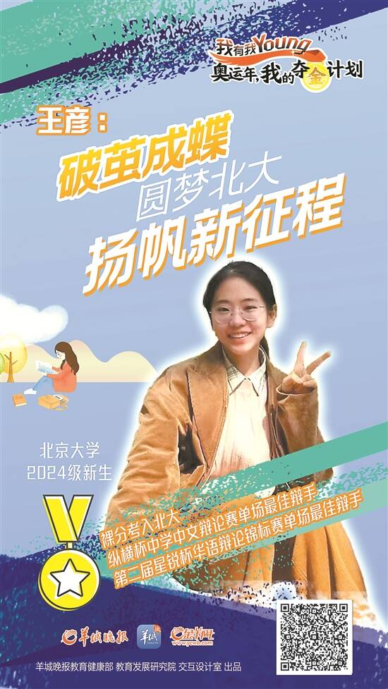 “北大哲学系教授杨立华先生在2023年开学典礼上的寄语:‘我所有的担心都凝聚成一个希望,希望你们不要虚度了自己的青春……’这句话深深触动了我。”王彦感慨地说。杨立华教授的这番话,助推王彦加快追梦的步伐。今年九月,她终于以广州市第二中学优秀毕业生的身份,踏入了梦寐以求的北京大学,成为了一名大一新生。