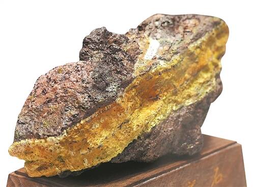 韶关翁源下庄,广东核工业教育基地中展出的铀矿石 羊城晚报记者 姜雪媛 摄