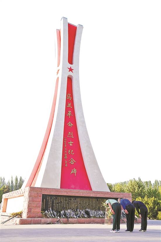 2023年5月下旬,在羊城晚报的组织筹划下,数位粤籍马兰老兵重返马兰,向马兰革命烈士纪念碑鞠躬 羊城晚报记者 宋金峪 姜雪媛 摄