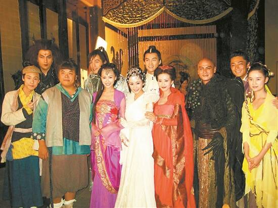 《仙剑奇侠传三》演员合影,前排中间从左至右依次为唐嫣、杨幂、刘诗诗