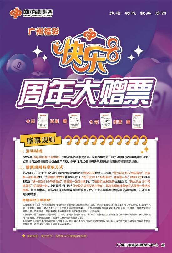 500万元!广州福彩“快乐8”赠票活动进行中 2024年10月24日 黄颖琳、郭新庆、盘芷滢