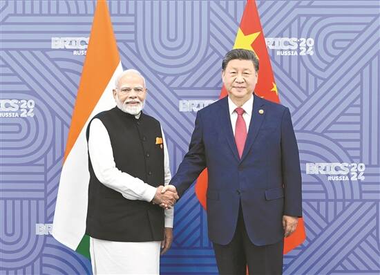 习近平指出,中国和印度同为文明古国、发展中大国、全球南方重要成员,都处在各自国家现代化建设的关键时期。中印正确把握历史潮流和两国关系发展方向,符合两国和两国人民根本利益。双方应该加强沟通合作,增进战略互信,相互成就彼此发展梦想。双方也要肩负起国际责任,为广大发展中国家联合自强作出表率,为推动世界多极化、国际关系民主化作出贡献。