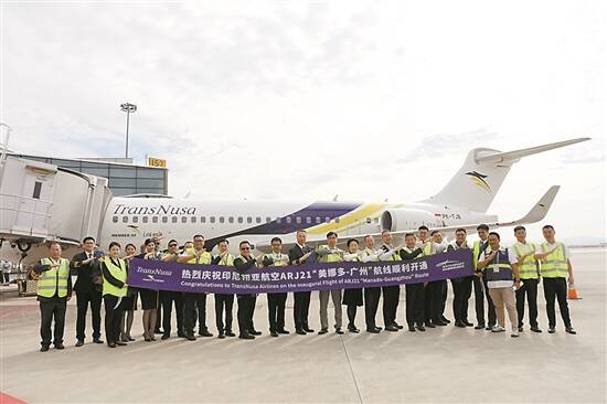 10月29日上午,从印尼美娜多萨姆·拉图兰吉国际机场飞来的8B167航班,稳稳地降落在广州白云国际机场,标志着印尼翎亚航空美娜多—广州首航成功。这是海外航空公司首次使用国产飞机执行往返中国的国际航班,也是ARJ21飞机目前执飞的最长商业航线。