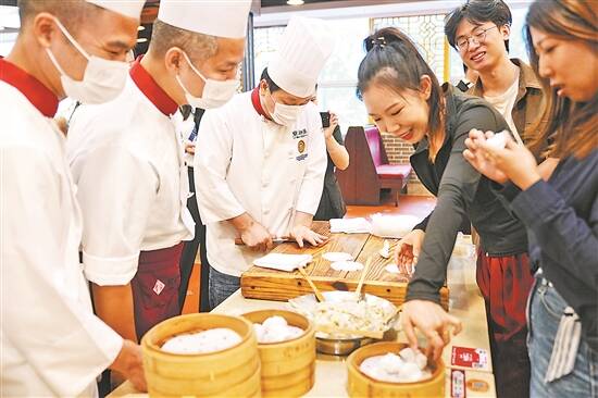 稍作休整,青年作家和艺术家们来到“揽胜荔湾”的最后一站——感受广府早茶文化。活动现场的虾饺制作体验吸引不少青年创作者上手尝试。中国合唱协会会员顾昕一边包虾饺一边和记者分享:“我出生在广州,虽然经常吃虾饺但从来没有自己包过,第一次知道虾饺的面皮是用生粉做的。”顾昕表示,岭南气息已深入她的骨髓,生活本就是艺术,感激此次活动带给她如此特别的体验。