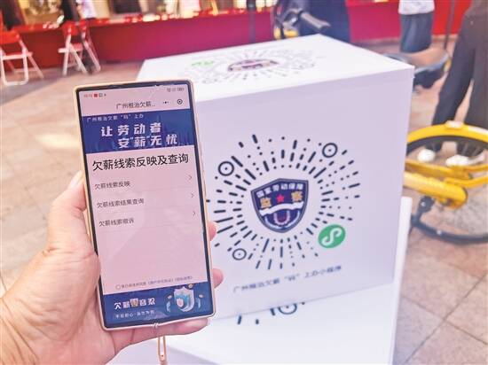 羊城晚报讯 记者张璐瑶、通讯员广正发摄影报道:扫一扫,就能解决欠薪难题,实现“码”上维权。近期,广州根治欠薪“码”上办小程序正式上线。11月6日上午,中共广州市委政法委组织发起的“平安广州 有你有我”主题宣传月活动来到广州天河南步行街,现场举行了根治欠薪“码”上办小程序上线宣传月启动仪式。