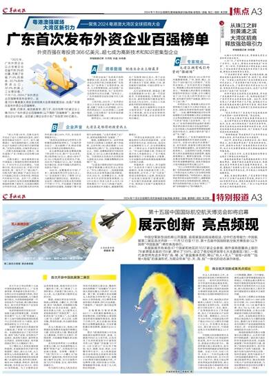 珠海航展集团有限公司董事长孙洁峰表示,从首次开辟的中国航展第二展区到主展区的多项高新科技成果,本届航展凝聚了科技创新的力量,展现了我国在商业航天、低空经济等新兴产业的飞速发展。航展不仅将为国内外观众呈现一场科技盛宴,更将为新质生产力的发展提供重要平台。希望通过航展的举办,推动我国航空航天产业的高质量发展,为国家整体科技进步和经济腾飞注入澎湃动力。 (钱瑜)