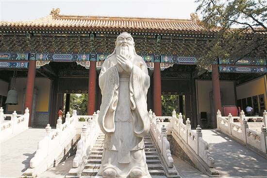 北京孔庙里的孔子雕像 图/视觉中国