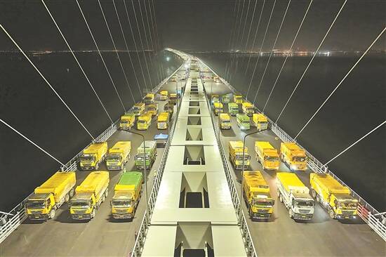 羊城晚报讯 记者王丹阳,通讯员粤交集宣、张鸣子报道:11月14日凌晨,黄茅海跨海通道黄茅海大桥荷载试验完成,54辆载重共1890吨的汽车分4次加载,最终稳稳停在桥面上。黄茅海跨海通道另一座主桥高栏港大桥则于11月5日完成荷载试验。至此,黄茅海跨海通道桥梁工程荷载试验全部完成,通车前的“深度体检”达标。
