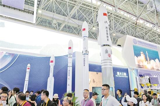 中国航展现场,长征系列运载火箭模型 羊城晚报记者 郑达 摄
