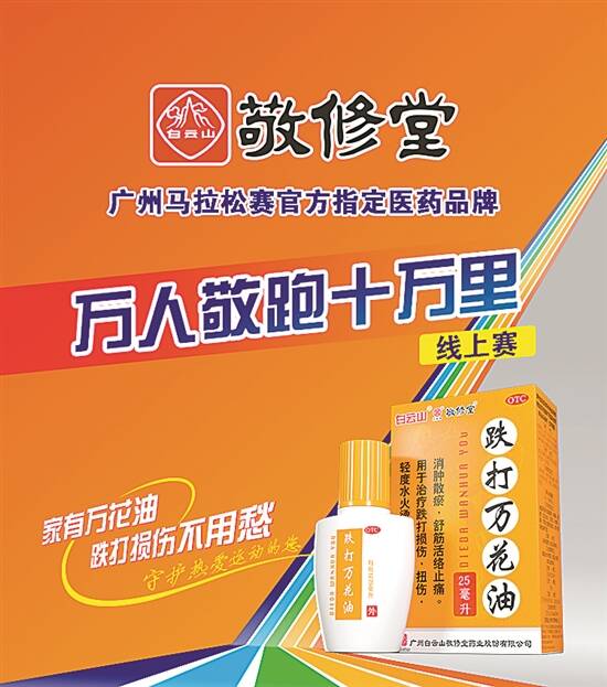 作为“广马”的唯一医药支持商,敬修堂始终秉承“敬业修明、广施妙药、普济众生”的传统经营宗旨,致力于传承与弘扬中医药文化。此次,除了继续用“跌打万花油”支持“广马”赛场上的一众跑友,敬修堂还与广东省内16家连锁大药房强强联合,掀起运动热潮,用不断向前奔跑的态度致敬2024年广州马拉松赛事,用高品质的产品满足广大运动爱好者的健康需求。