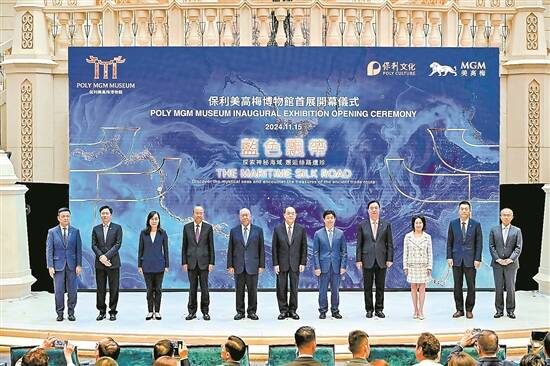 随后,在澳门特别行政区行政长官贺一诚的见证下,刘化龙与何超琼为“保利美高梅博物馆”主持揭牌仪式。随后,各位嘉宾为博物馆首展“蓝色飘带——探索神秘海域 邂逅丝路遗珍”进行剪彩。这座符合国家一级文物展示标准的国际级博物馆,将中华文化的故事传播得更广、更远。