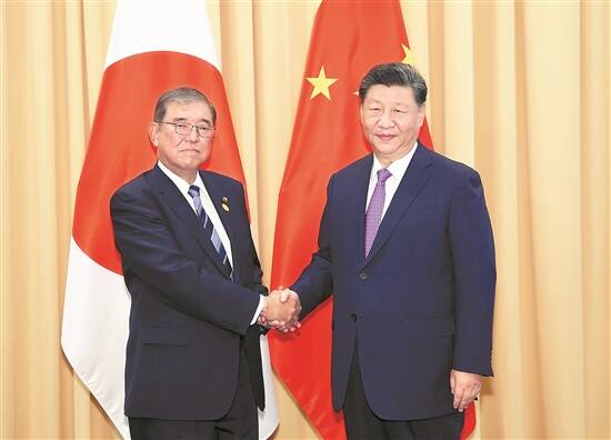 习近平强调,中国的发展是世界的机遇,对日本等周边邻国更是如此。希望日方同中方一道,树立正确相互认知,从战略高度和全局视野把握好两国关系正确方向,将双方达成的重要政治共识体现到具体政策和实际行动中,正视历史、面向未来,妥善处理好历史、台湾等重大原则问题,建设性管控分歧,维护好两国关系政治基础。双方要深化拓展人文和地方交流,促进两国人民特别是青年一代的相互了解。中日经济利益和产业链供应链深度交融,双方要坚持合作共赢,维护全球自由贸易体系和产供链稳定畅通。加强国际和地区事务协作,践行真正的多边主义,弘扬开放的区域主义,共同应对全球性挑战。