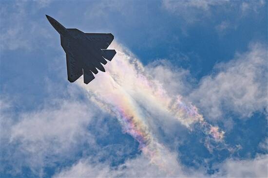 俄罗斯苏-57在烈日下进行飞行表演