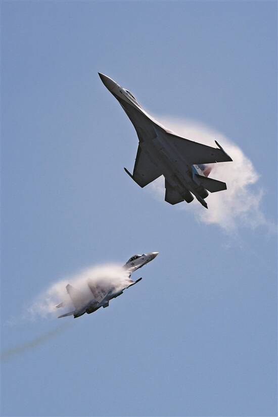 提起航展,飞行表演是观众绕不开的期待。今年,中国空军“八一”飞行表演队、“红鹰”飞行表演队以及俄罗斯“勇士”飞行表演队同台献技,带来了一场场令人叹为观止的空中芭蕾。歼-20、歼-35A、歼-15T等具备国际领先水平的国产战机齐齐亮剑;首次来华的俄罗斯第五代战机苏-57同台竞技;时隔8年重回珠海的俄罗斯“勇士”飞行表演队再次空中炫技……蓝天为幕,战机为笔,绘出力与美的壮丽画面。