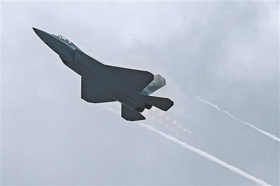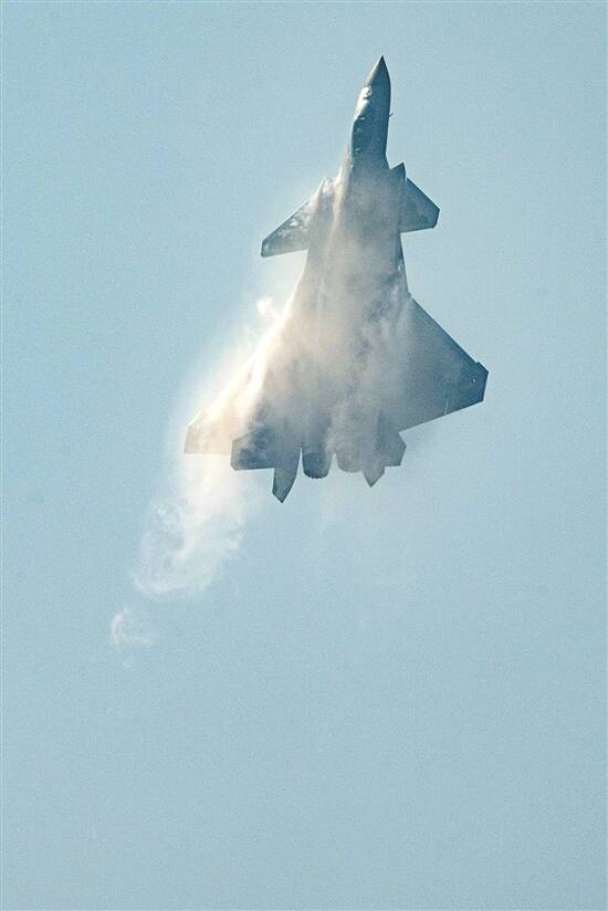 歼-20战机在珠海航展上进行飞行展示