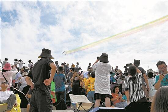 观众观看“八一”飞行表演队表演