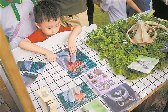 为增强趣味性,现场还精心布置了别具一格的展览:自然教育市集活动周边,广州市自然教育成果展与“任鸟飞”城市鸟类生物多样性公益展,绿创空间搭设的“零碳公园建设家”环保艺术展互动体验新颖独特,吸引众多游客驻足品鉴。