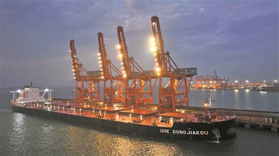 羊城晚报讯 记者余胜容,通讯员谢晓琳、纪传旭、廖俊霖摄影报道:11月23日5时许,在湛江海事部门的护航下,满载矿石的40万吨级船舶“矿石董家口”轮安全靠妥湛江港601泊位(见图)。这标志着湛江港首次实现40万吨级船舶满载夜间航行靠泊作业,再开华南地区沿海港口先河,对提升港口船舶通航效率和港口整体竞争力具有重要意义。
