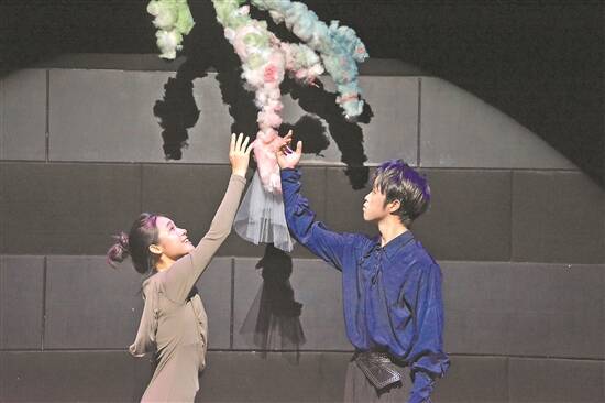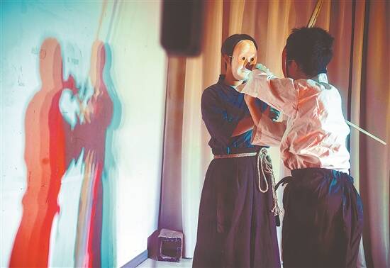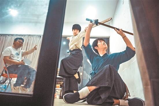 话剧排练现场,演员们按照秦旭的剧本设计动作