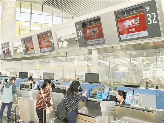 南航快线值机柜台,旅客有序排队 通讯员提供