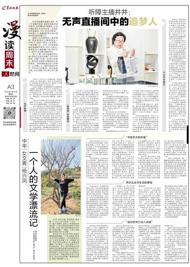 52岁、农村出身、单亲妈妈、曾经要一个人打三份工养活一个女儿……在一般人印象中,这样几个标签组合而成的是一个为生活奔波劳碌的中年妇女形象。然而,杨兴凤却用她的方式打破了这种印象——她是一个至今仍抱着文学梦的中年“女文青”。