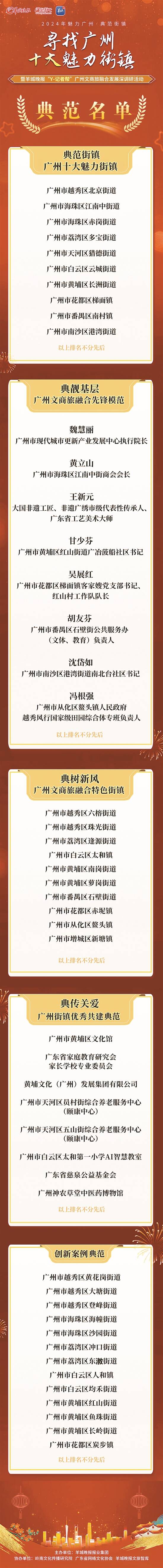 1月13日下午,2024年魅力广州·典范街镇——寻找广州十大魅力街镇暨羊城晚报“Y-记者帮”广州文商旅融合发展深调研活动发布盛典在羊城创意产业园智酷车间成功举行,现场揭晓了2024年“魅力广州·典范街镇”深调研结果,集中展现那些能够体现广州特色、彰显时代精神的优秀案例,为城市发展探寻更多的可能性与新路径。