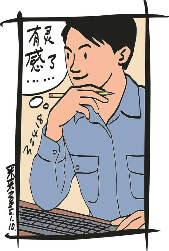 邻居赵大妈跟大张媳妇李玲关系不错,她看到大张每天挺松散的样子,就关心地问李玲,你老公每天优哉游哉的状态,能写出好文章吗?对于好心邻居的质疑,李玲倒是一点也不担心。大张看似行为散淡,实则抓住灵感迸发的每一个瞬间。他写作的灵感从哪里来?很多时候都是在看电影、听音乐、打游戏的时候忽然迸发的。只要有灵感,大张就会马上把它记下来,然后通过这个点连出一条线,继而再生成片段乃至最终成篇。因此,大张在进入写作状态时,效率还是蛮高的,作品的质量也堪称一流,很受读者的欢迎,他的小说在各大图书网站售卖排行榜上都位居前列。