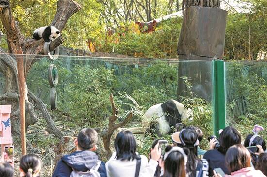 大熊猫“妹猪”品尝新春大餐丰容食品