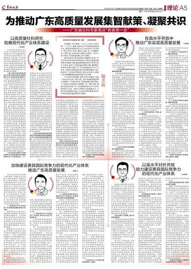 建设更具国际竞争力的现代化产业体系,是广东扎实推进高质量发展的核心关键,也是广东在中国式现代化建设中走在前列的应有之义。广东作为全国经济大省、制造业大省和科技创新大省,同时也是全国外贸大省、开放门户枢纽和国内国际双循环战略节点。因此,应坚定不移扩大高水平对外开放,提升现代化产业体系的全球贸易格局、汇聚全球科技创新资源和全球资本要素资源,助力广东现代化产业体系更加具备智能化、绿色化和融合化的基本特征,更加具备开放性和国际竞争力的优势特征。
