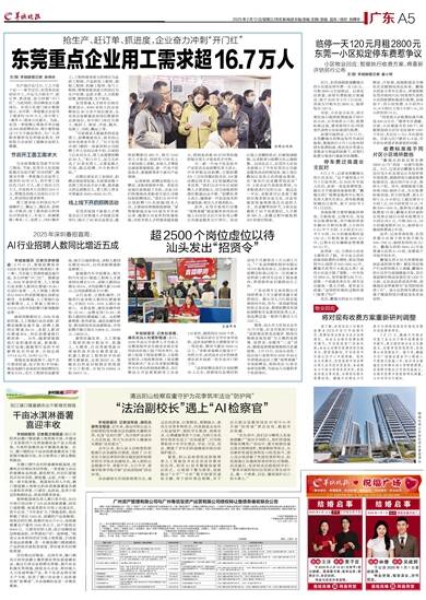 为全面掌握东莞春节后用工情况,节前,东莞市人社局就赴重点企业开展“访企问需”,摸清全市第一季度重点企业用工需求约16.78万人,其中普工岗位约12.81万人,技工岗位2.72万人,专业技术人员岗位0.54万人,管理及其他人员岗位0.72万人,形成岗位需求清单。