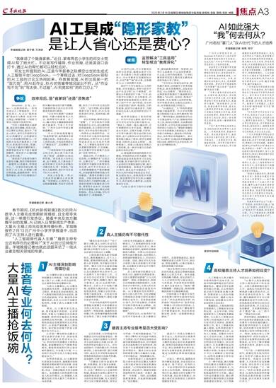 AI席卷教育领域的趋势不可避免,学校如何应对至关重要。“我们的态度是用来促进学习完全没有问题,但不能代替学生的思考。人必须经历思维发展的过程,能力才能得到提高。如果这个过程被AI替代,那永远不可能进步。”广州市天河外国语学校党总支书记、校长胡东表示,该校利用开学典礼、班会课等引导学生用AI辅助学习,而不是用AI做作业,以此化被动为主动。