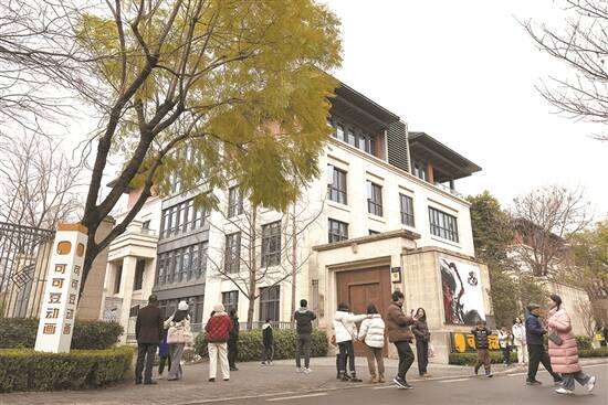 影迷们在成都可可豆动画影视有限公司前打卡 新华社发