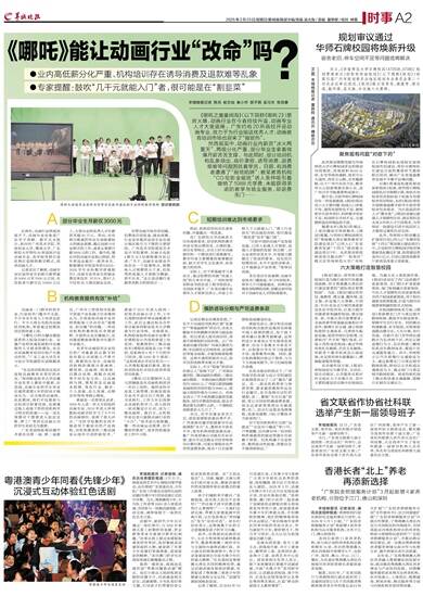 《哪吒之魔童闹海》(以下简称《哪吒2》)票房火爆,动画行业在今春持续升温,动画专业人才大受追捧。广东约有20所高校开设动画专业,致力于为行业输送优秀人才;动画教育培训市场也迎来了“报班热”。