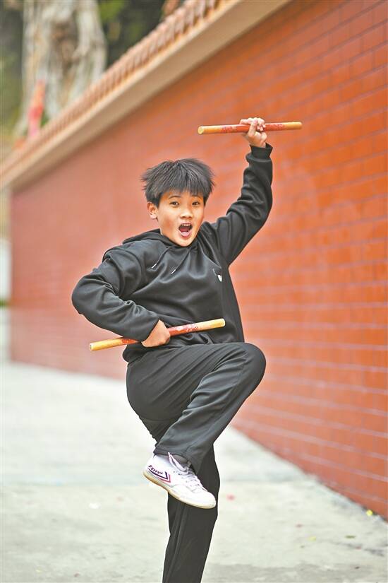 过年放假一回家他就到队里参加训练,他觉得跳英歌是有瘾的,虽然训练真的很累,练完手脚都是酸的,但这一切都值得。