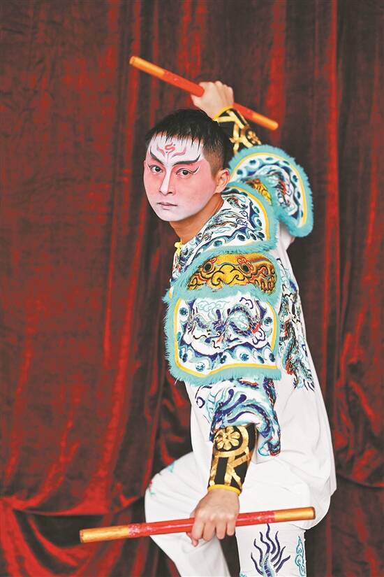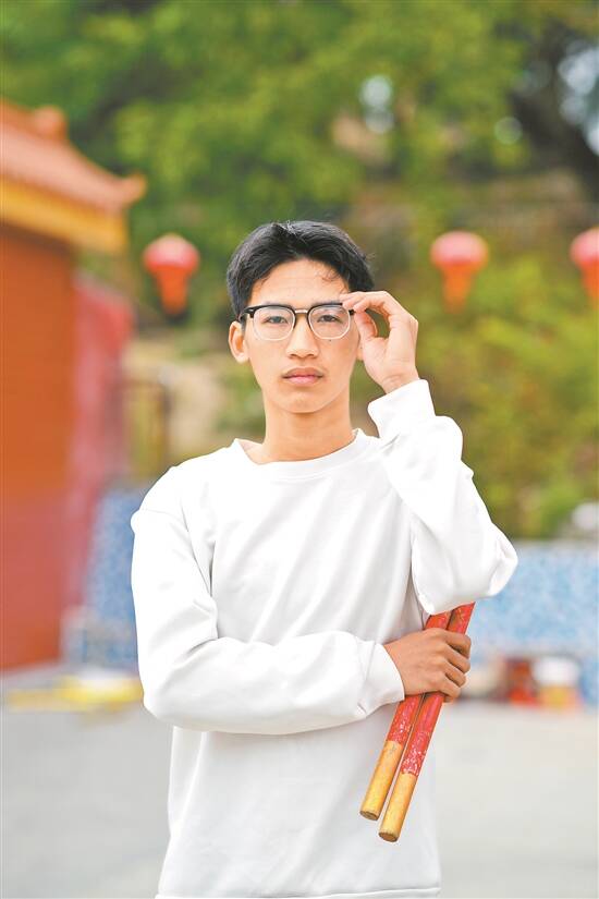 辛宰榜刚大学毕业,饰演“霹雳火秦明”,今年24岁,学习英歌13年了,觉得英歌舞能展现出威武雄壮和凶猛气势,还能锻炼身体,从而产生热爱
