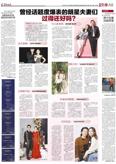 现状:情感稳定的张晋蔡少芬成为婚恋综艺的常客,二人育有两女一子,组成幸福的五口之家。蔡少芬加盟《乘风破浪的姐姐4》时,张晋不仅包揽后勤带娃,更以“姐夫团”身份上台大跳女团舞。
