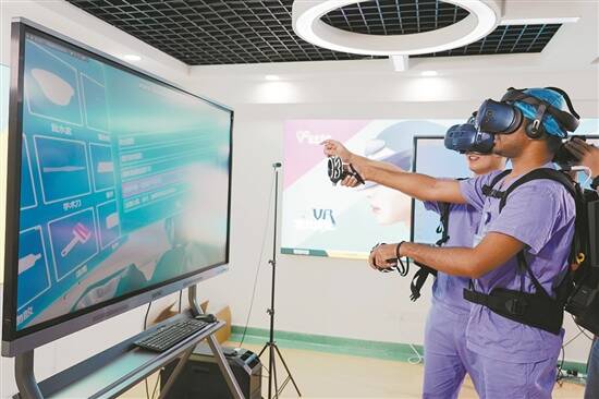 南方医科大学学生借助虚拟仿真设备开展技能学习