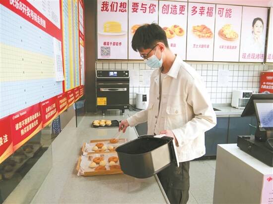 钟彬每天的工作从拆开包装、饼干装盘、放入烤箱开始,烘焙之余,他还为附近居民提供彩票销售及兑奖服务。尽管沟通不便,但钟彬总是用微笑和耐心为每一位顾客服务。“这里的工作人员都是熟人,他们对我帮助了很多,我很满意这份工作。”8岁时,钟彬曾在盐康中心进行康复训练,2023年大学毕业后,在盐康中心的邀请下和福彩中心的帮助下,他回到了这个有爱的地方。起初,他对投注站的业务很陌生,投注机出现故障时也束手无策,但他没有言弃,反而认真钻研。现在的他,已经可以处理许多突发状况,成为了一名熟练的福彩销售员。
