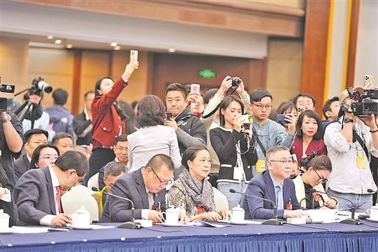 6日下午,广东代表团开放团组会议上,境内外媒体记者步入会议内场,“零距离”拍摄代表审议和发言现场