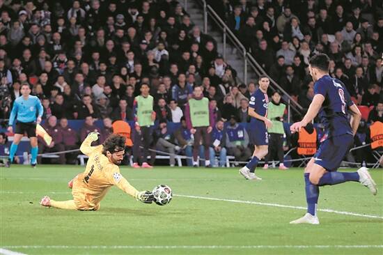 这场双雄会演变成了攻防演练,大巴黎在主场占尽优势,射门次数以27比2领先,射正次数以10比1领先,主队取得超过七成的控球率。利物浦很少如此狼狈,但这支传统豪门展现出钢铁般的意志。巴西国门阿利松贡献10次扑救,当选全场最佳球员,两名中卫范戴克、科纳特,甚至中场索博斯洛伊化身利物浦门前的“血肉长城”,“红军”力保球门不失。