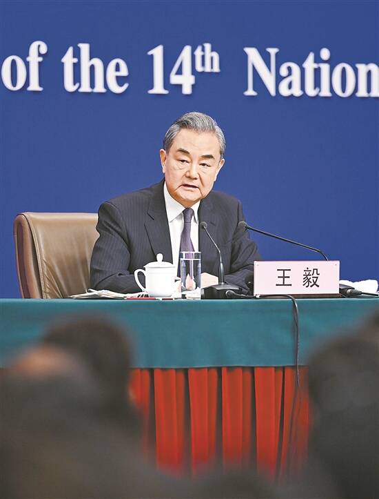 3月7日,十四届全国人大三次会议在梅地亚中心举行记者会。中共中央政治局委员、外交部长王毅就中国外交政策和对外关系回答中外记者提问。