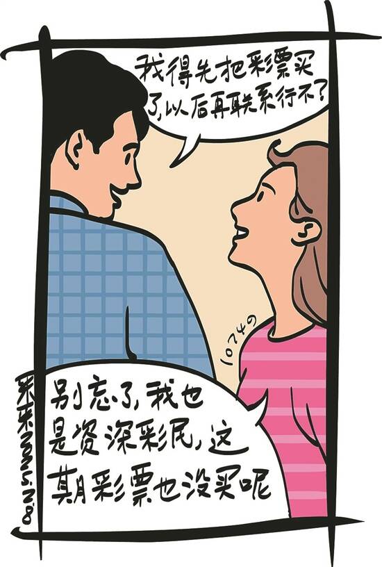 走着走着,李明见不远处有家投注站,赶紧说:“我得先把彩票买了,以后再联系行不?”周蕊莞尔一笑:“别忘了,我也是资深彩民,这期彩票也没买呢?”
