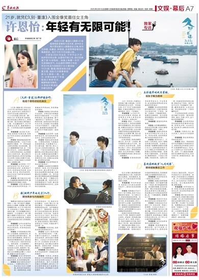 入行三年有余,许恩怡已经参演了逾10部电影,与许多资深演员有过合作。华语影坛里,不少“00后”女演员陆续崛起,许恩怡也期待自己可以做得更好,成为一个好演员。
