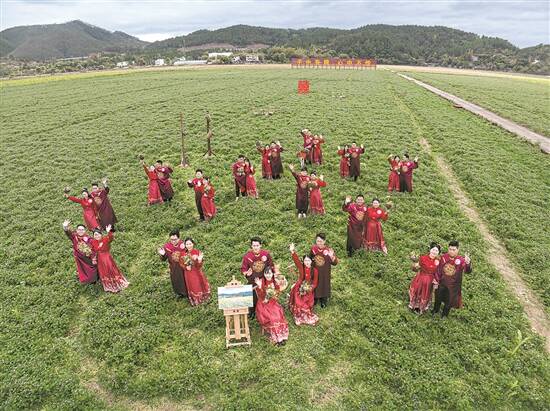 据悉,此次活动由省农业农村厅主办,河源市农业农村局、东源县人民政府、广东省婚庆行业协会承办。当天上午,15对新人身着红色汉式婚服,以天地为证、沃土为盟,在数千亩姹紫嫣红的紫云英花海中举办了一场浪漫而有意义的集体婚礼。