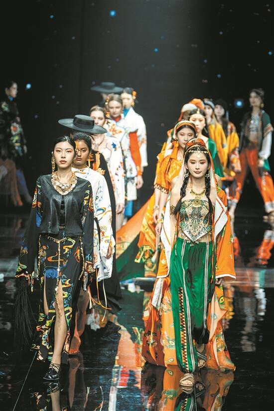 第三届潮汕服博会开幕秀现场,模特身着霓裳羽衣展现汕头纺织服装产业魅力 (资料图)