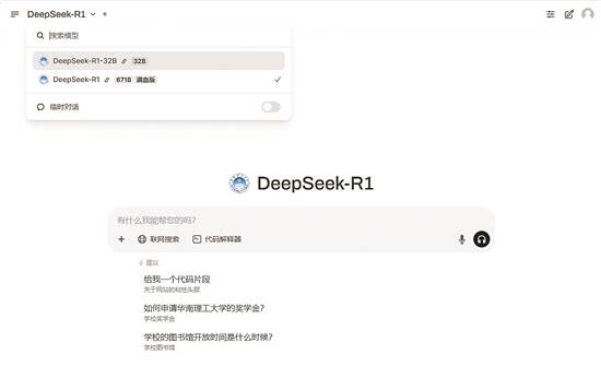 陆以勤称,DeepSeek-R1671B满血版算力消耗大。华工起初投入9台服务器(共36张A800GPU卡),用户多时有卡顿,又投入10台(共40张A800GPU卡),现总计19台(76张A800GPU卡)。因现有算力无法支撑所有应用用满血版,华工还部署了高性价比的DeepSeek-R132B量化版,提供多种选择。