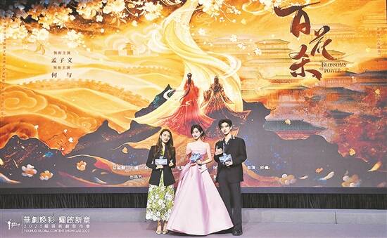 《百花杀》制片人张莹颖,主演孟子义、何与(从左至右)